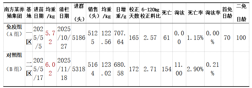 出栏均重:免疫组122.56kg、对照组123.02kg(最终体重差异不大)