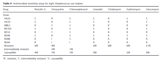 表4 8株猪链球菌分离株的抗菌药物敏感性检测结果