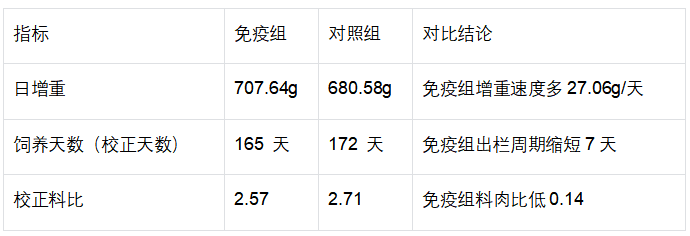 出栏均重:免疫组122.56kg、对照组123.02kg(最终体重差异不大)