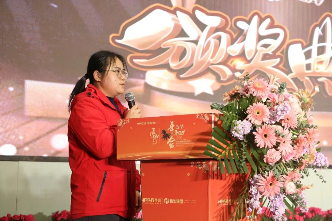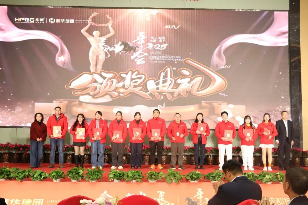 颁奖现场,掌声与荣誉相伴,获奖代表依次登台领奖,接过沉甸甸的荣誉证书与奖杯。先进代表杨静、罗荣海在发言中表示,这份荣誉是认可更是责任,未来将以更高的标准要求自己,发挥模范带头作用,在岗位上再创佳绩,同时也呼吁全体同事以先进为标杆,同心相向、争先创优,践行“合心・合力・合拍”理念,坚守“豁出去干”初心。这些先进典型与优秀团队,既是2025年华派集团发展的见证者、参与者,更是2026年全体员工奋进的风向标。